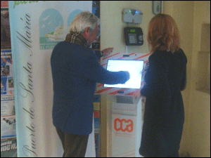 El punto de información se ha situado en la oficina de Turismo del Centro Comercial y consta de una pantalla táctil de 17” dónde, sin necesidad del teclado convencional, se podrá manejar la información solicitada de manera interactiva.