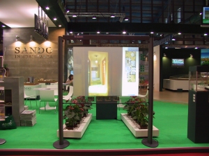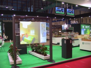 El stand de Sando Inmobiliaria, tuvo como novedad este año las pantallas interactivas Ubiq window 150 proporcionadas por ART STUDIO MULTIMEDIA dando a conocer las promociones e inmuebles de la marca, de una forma diferente gracias a los contenidos personalizados que le realizo esta empresa.