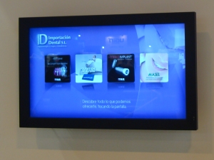 Art Studio Multimedia ha realizado los contenidos  interactivos para la empresa Importación Dental S.L., contenidos que se han mostrado en una pantalla táctil de 42" proporcionada por la empresa de tecnología interactiva Visualpanel. Los visitantes con un toque de mano pudieron pasar los distintos slides de la aplicación multimedia.