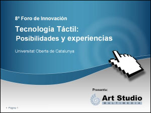 El equipo directivo de Art Studio, formado por José Miguel Aragonés Salazar y David González Córdoba, participó el día 16 de junio en el 8º Foro de Innovación organizado por la Universidad Oberta de Catalunya y que tuvo como tema principal la Tecnología Táctil.